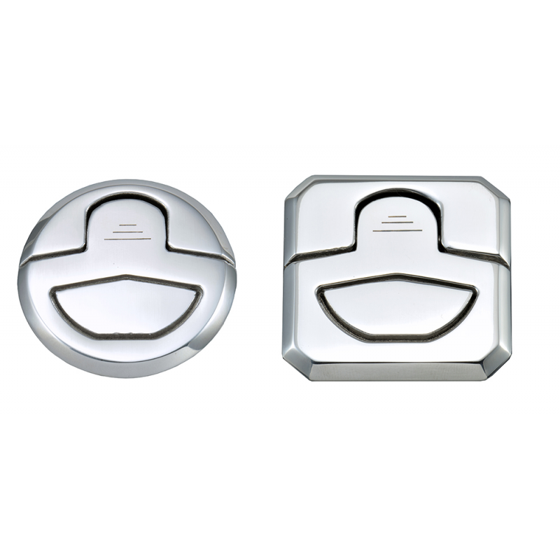 Alzapagliolo antivibrantein acciaio inox AISI 316 lucidato a specchio, stagno. Maniglia a filo dotata di molla, fissaggio tramite viti non a vista.