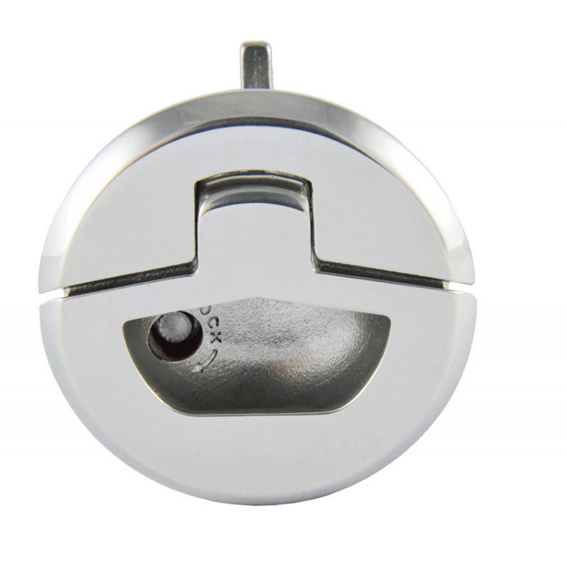 Chiusura miniin fusione di acciaio inox AISI 316, lucidata a specchio, non stagna dotata di una maniglia dal grip confortevole. Completa di controflangia per il fissaggio, viti e guarnizione.