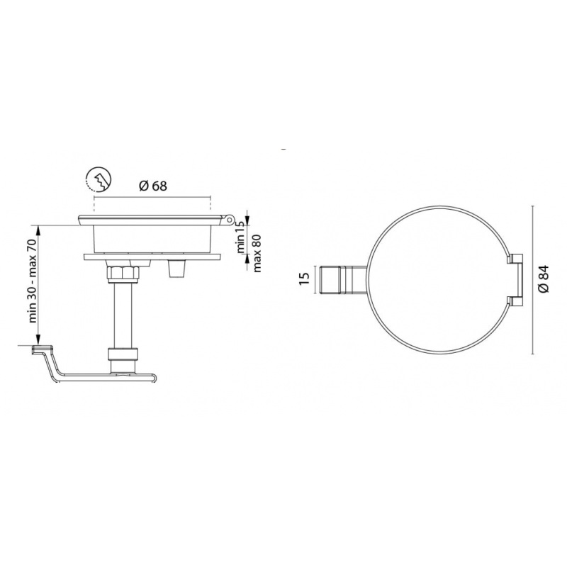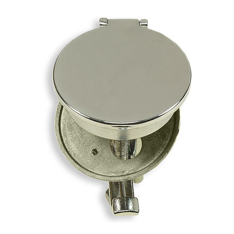 Alzapagliolo con tavella a tiraggio regolabile e chiusura stagna in ottone cromato Ø est. mm 84, Ø incasso mm 68.