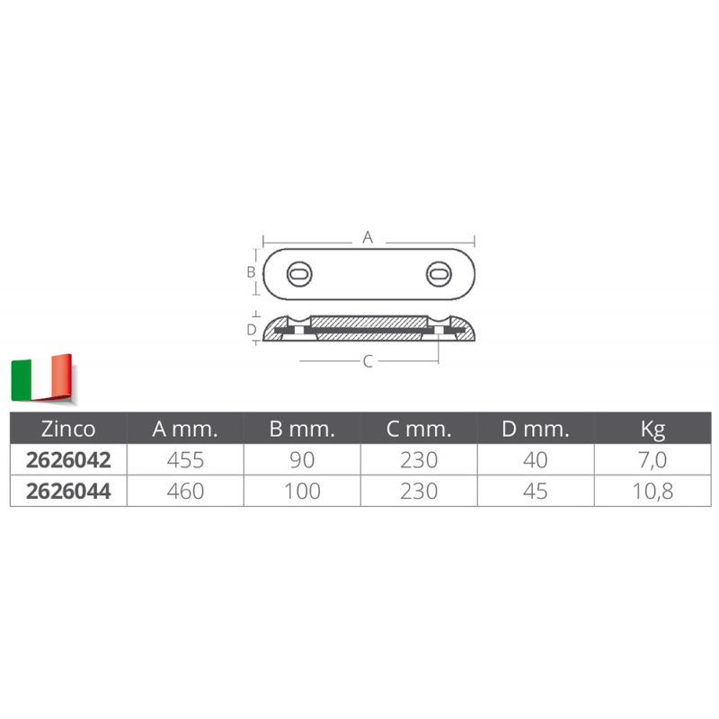 ANODO FAIRLINE IN ZINCO MM.460x100x45h
