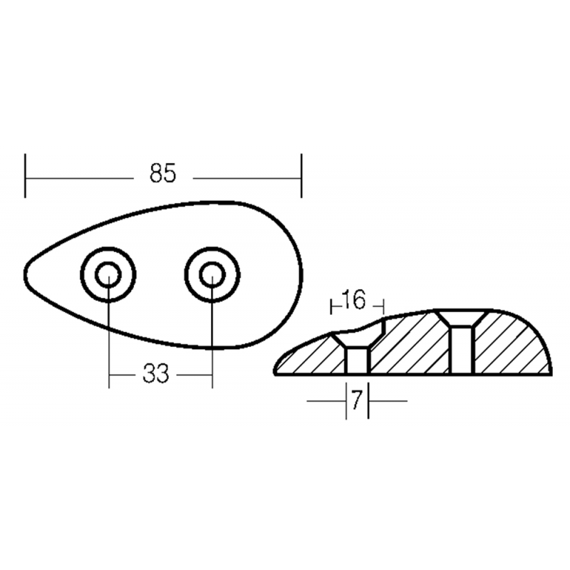 Anodoovale, in zinco, per flaps, mm. 85x40x15