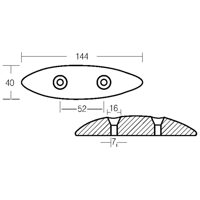 Anodoovale, in zinco, per flaps, mm. 145x40x20