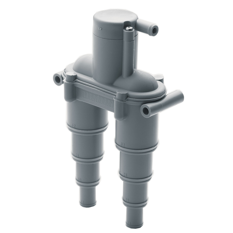 Antisifonein materiale plastico con valvola di pressione.Quando il punto di ingresso dell’acqua di raffreddamento nello scarico si trova ad un’altezza inferiore a cm 15 sopra la linea di galleggiamento, c’è pericolo che, spegnendo il motore, l’acqua di raffreddamento entri nel motore a causa dell’effetto sifone. Si posiziona almeno cm. 40 sopra la linea di galleggiamento. Portagomma universale Ø mm. 13-19-25-32.