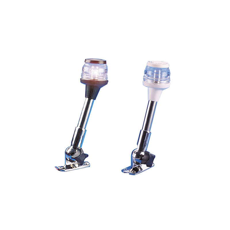 Asta in acciaio inox Ø mm. 19, abbattibile, con fanale a 360°, basemm. 77x39. H. mm. 230. Omologati R.I.Na. e M.M.M per imbarcazioni fino a 20 mt.