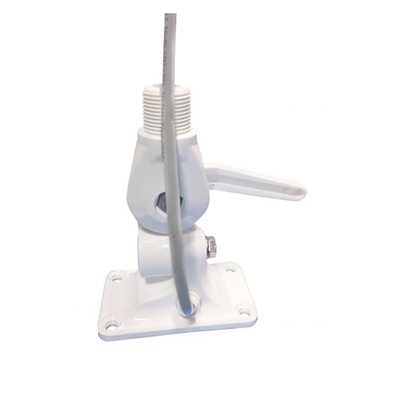 Base a doppio snodo in nylon rinforzato resistente ai raggi UV, con bloccaggio a leva e passaggio cavo e passacavo per accesso sottocoperta incorporato nella base.