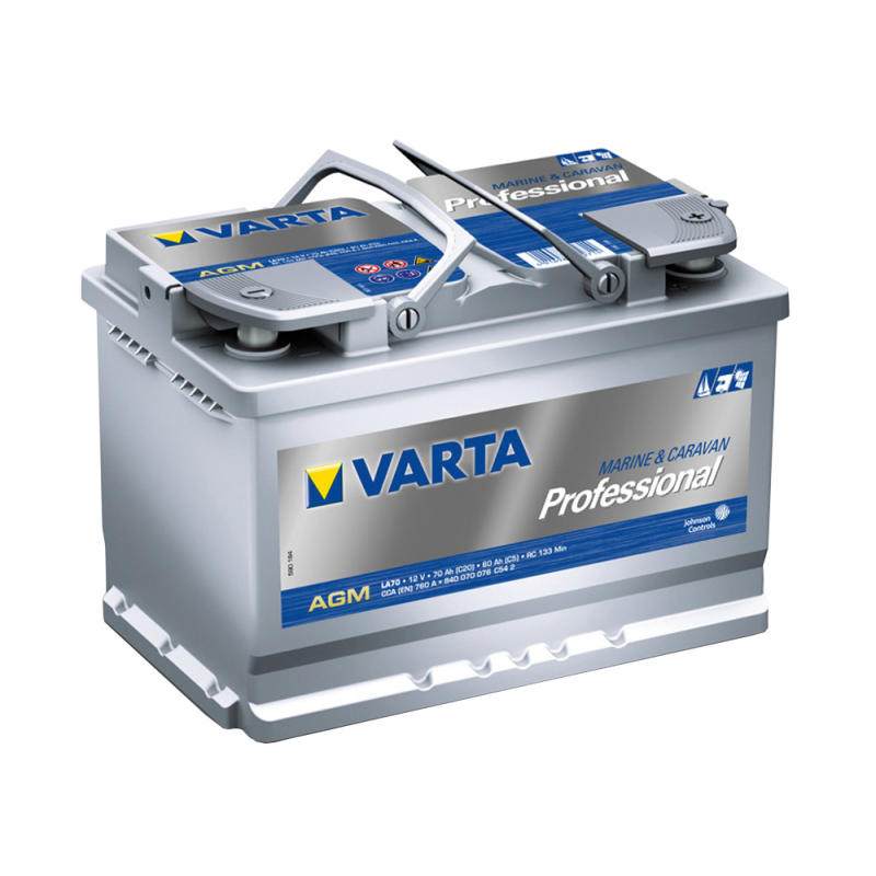 Batteria per avviamento e servizi di bordo, resistenza al ciclaggio dalle 3 alle 4 volte superiore rispetto alle tradizionali batterie ad acido libero, uso combinato, ideale per avviamento e servizi, manutenzione zero e a prova di fuoriuscite. Autoscarica minima ideale per un utilizzo stagionale. Elevata stabilità meccanica grazie alla tecnologia AGM per una maggiore resistenza a scosse e vibrazioni. Massima sicurezza d’uso grazie alle valvole di sicurezza. Bassa resistenza interna grazie ai separatori in fibra di vetro per un’accettazione di carica e un’erogazione di corrente ottimizzate. Capacità: 70Ah. Spunto: 760 Amp. Dim. mm. 278x175x190