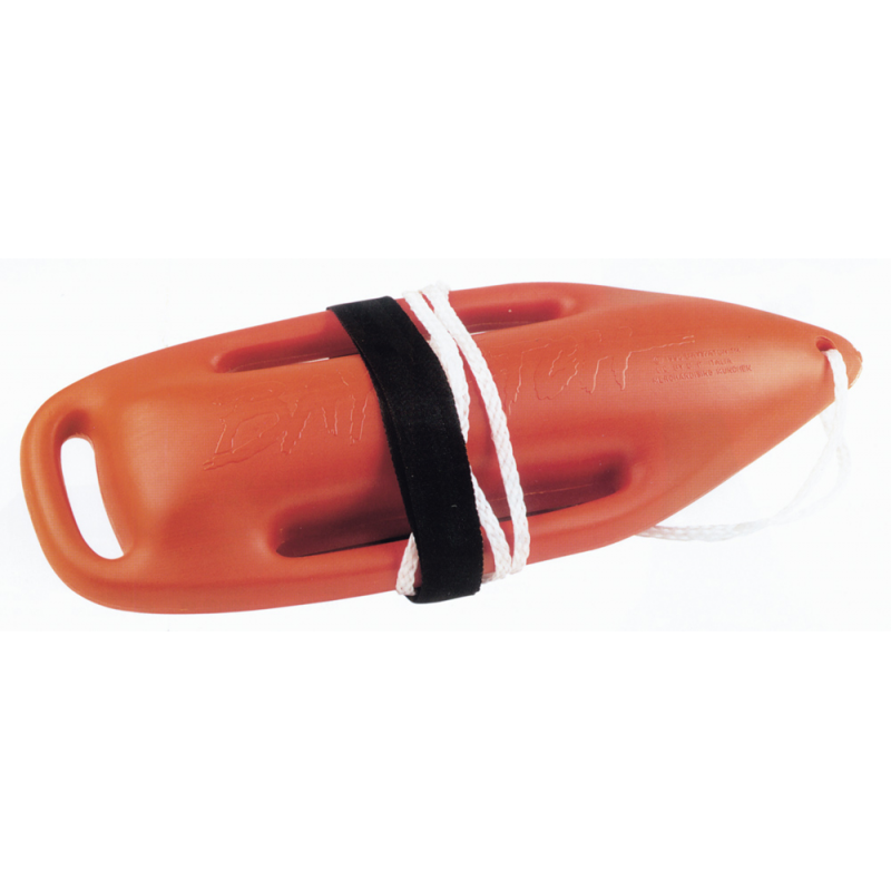 Salvagente professionale. La superficie particolarmente liscia e la speciale conformazione facilitano il traino del salvagente fino alla persona da salvare. Completo di cima cm. 200 e tracolla. Dim. mm. 680 x 130 x 230 peso kg. 1,2