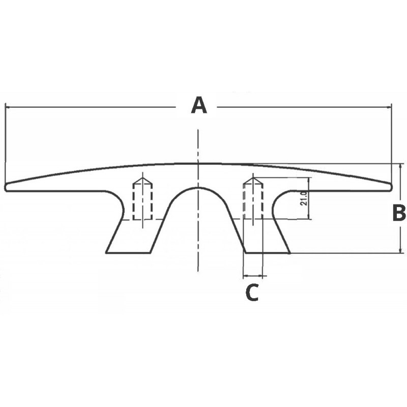 Bitta a galloccia in acciaio inox AISI 316 lucidato a specchio, fissaggio tramite due prigionieri non forniti