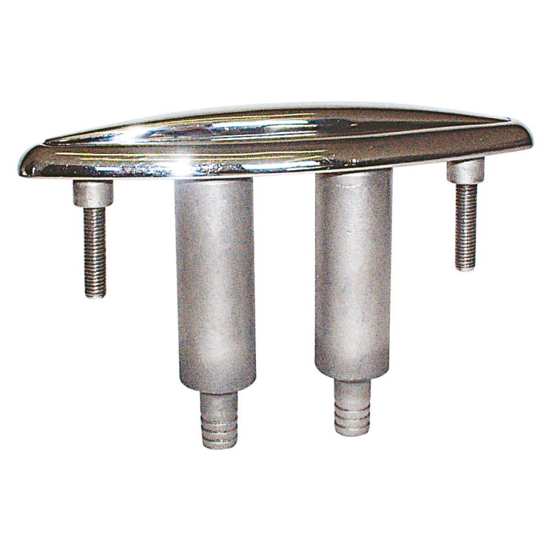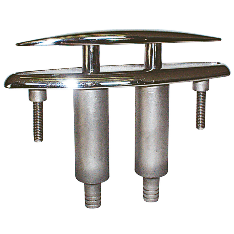 Bitta a scomparsain acciaio inox AISI 316. Espulsione automatica a molla conleggera pressione nella parte superiore della bitta stessa. Dotatadi scarico di drenaggio acqua. Molto robusta. Fissaggio conprigionieri. Fornito di perni dado e piastra.