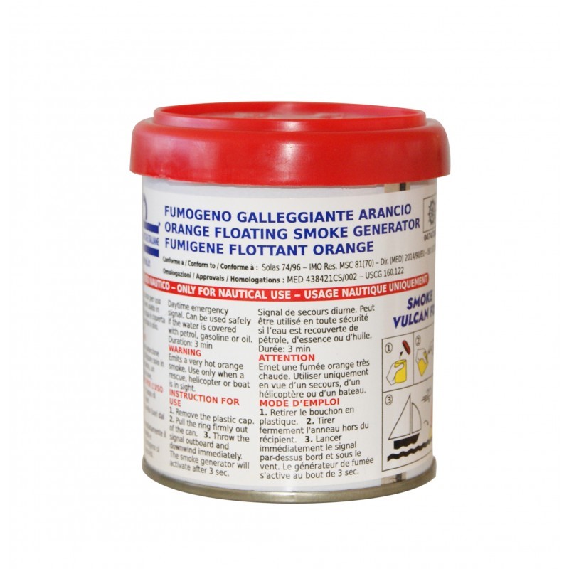 Boetta fumogena galleggiantearancione, ad alta visibilità per segnalazioni diurne.