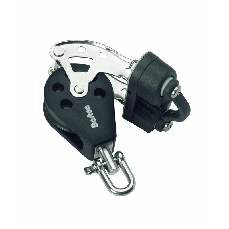 SERIE 2 - Bozzello singolo girevole con arricavo e cam, Ø cima max mm. 8, max carico di lavoro kg. 370 carico di rottura kg. 740, dimensioni puleggia mm.35 x 12, lunghezza mm. 100