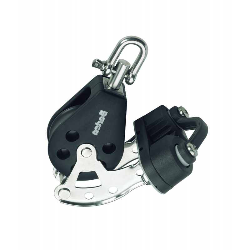 SERIE 4/5 - Bozzello singolo girevole con arricavo e cleam cleat, Ø cima mm. 12, max carico di lavoro kg. 750 carico di rottura kg. 1500, dimensioni puleggia mm.54 x 17, lunghezza mm.153