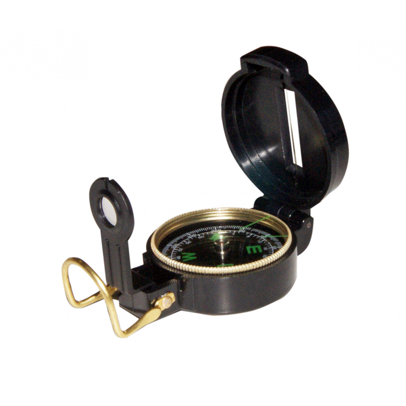Bussola da rilevamento, con scadimetro laterale. Provvista di lente di ingrandimento con lettura notturna molto chiara. Doppia scala in gradi e rombi. Dim. Ø mm 55