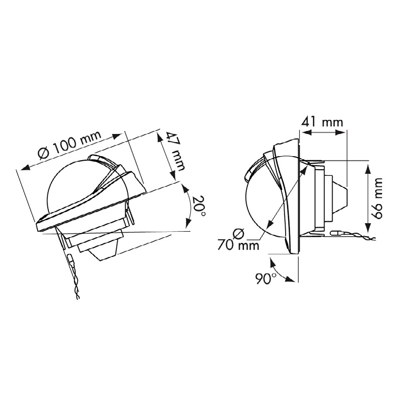 Con Ø apparente mm 70. Rosa conica con graduazione ogni 5°, per barche a motore da 5 a 8 mt, illuminazione di serie a 12 V. Installazione ad incasso su piani inclinati da 20° a 90° o verticali