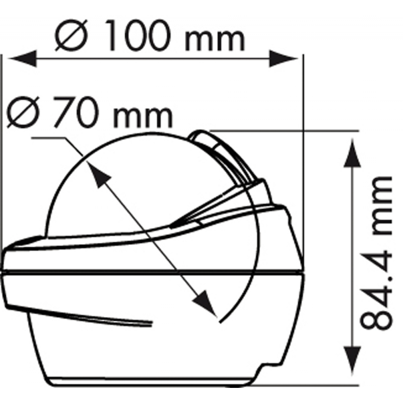 Con Ø apparente mm 70. Rosa conica con graduazione ogni 5°, per barche a motore da 5 a 8 mt, illuminazione di serie a 12 V. Installazione su chiesuola per piano orizzontale