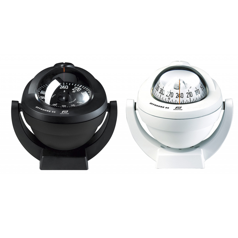 Bussola Offshore 95 Ø apparente mm. 81. Rosa con graduazione ogni 5°, per barche a motore da 6 a 10 mt., illuminazione di serie a 12-24 V LED. Installazione su staffa su piano orizzontale o verticale