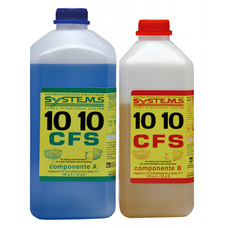 C-SYSTEM 10 10 CFS è una resina epossidica, multifunzionale, ideale per riparare, costruire, incollare, laminare, proteggere, stuccare, su legno e vetroresina. Non contiene solventi (CFS Completely Free Solvent). Sottoposto a test meccanici presso i laboratori del CTS Centro Tecnologico Sperimentale presenziati da RINA e altri registri navali. Ha uno standard qualitativo eccezionale e grazie alla sua fluidità, sfrutta una serie di additivi, che la rendono utilizzabile in ogni tipo di lavorazione per risolvere ogni esigenza, da lavorare sia a pennello che a rullo : collante legno-legno, legno-vetroresina, vetroresina-vetroresina e materiali eterogenei - per laminare tessuti di vetro, carbonio, kevlar su legno e su vetroresina ecc...- stucco strutturale (Structural Filler), aggiungendo gli additivi come Microfiller Powder, Addensante n° 2 o Microfibre Naturali e Minerali - stucco di riempimento e a rasare - mano di fondo per legno verniciato in trasparente e non verniciato - fondo antiosmosi - riparazione osmosi RESA: Per incollaggi il quantitativo varia da 300-500 g/mq in relazione alla rugosità della superficie. Per mano di fondo e impregnante da 12-15 mq/kg. NB - Su richiesta le confezioni di 10 10 CFS da 4,5 kg. e 30 kg. sono disponibili oltre che con catalizzatore STANDARD anche con catalizzatore FAST e catalizzatore SLOW (indicato nel periodo Primavera – Estate e comunque con temperature mai al di sotto dei 15°C.).