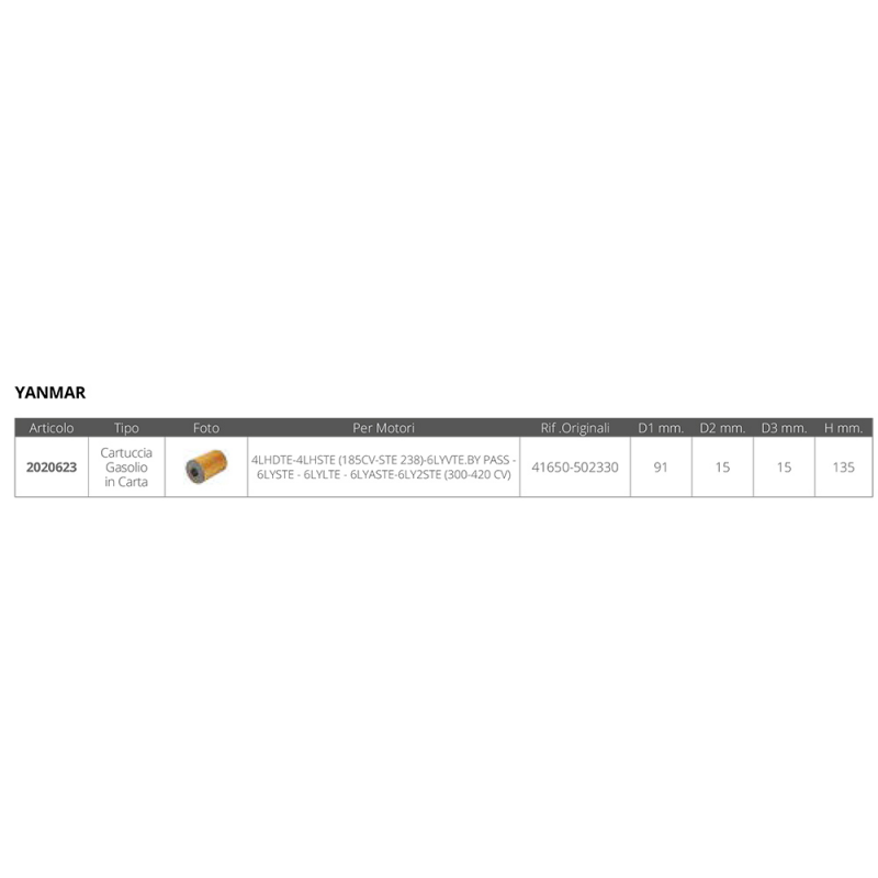 Cartuccia in carta per motori gasolio dim.Ø est.mm.91 Ø foro 1 mm. 15 Ø foro 2 mm. 15 altezza mm.135