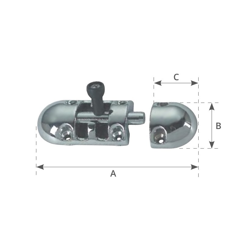 Catenaccio ottone cromato e nylon nero antivibrazioni.Dim. mm. 86x30