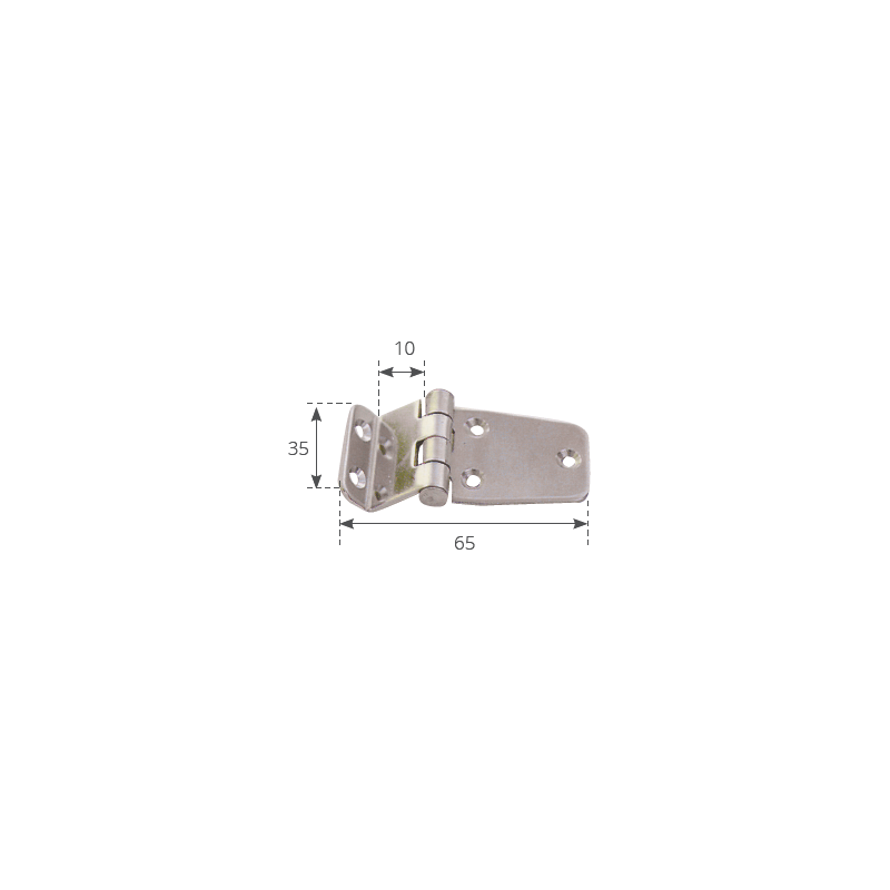 Cerniera in acciaio inox lucidata a specchio.Spessore mm. 2, squadra mm. 10.