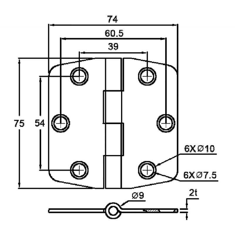 | 4949324 | CERNIERA CON COPERTURA MM.74X75 PERNO SEMINCASSO |