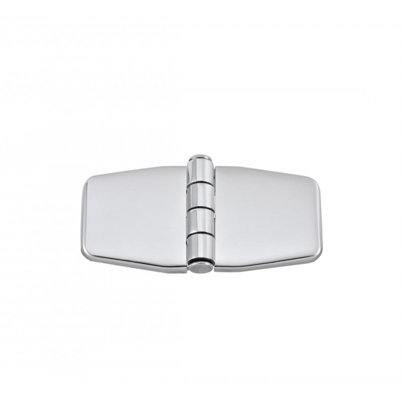 Cerniere con copertura in acciaio inox AISI 316 spessore mm.2. Tramite il nastro biadesivo 3m vhbpremontato sulla copertura stessa, permette di nascondere le viti della cerniera dopo il montaggio, congrande effetto estetico. dim. mm.76x37