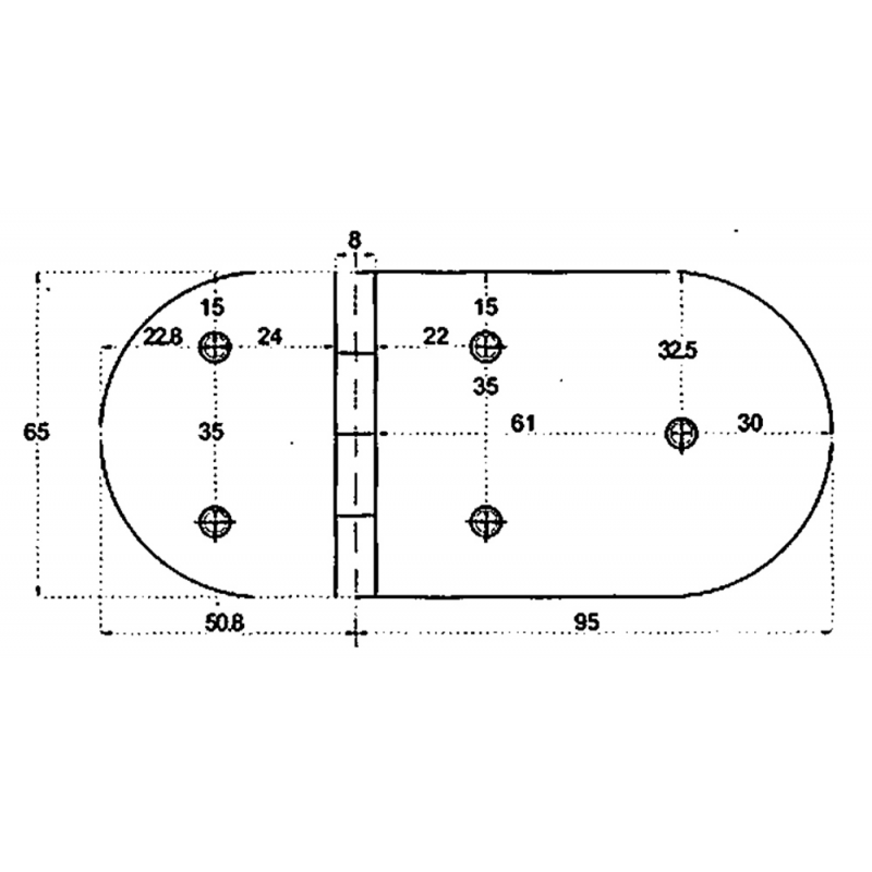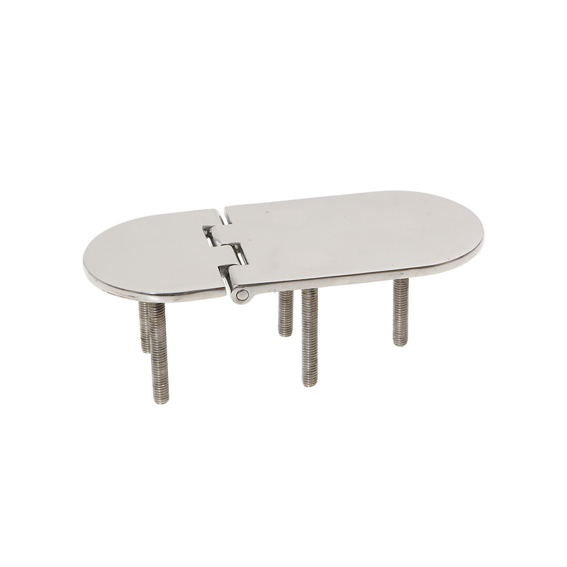 Cerniera lucidata a specchio in acciaio inox AISI 316. Spessore mm. 4, nodo rovesciato, apertura 95°,dimensioni lung. mm. 145 x 65, fissaggio con prigionieri lunghi mm. 45.