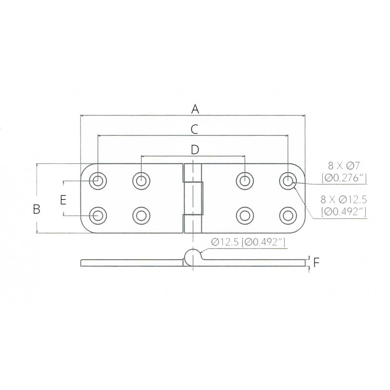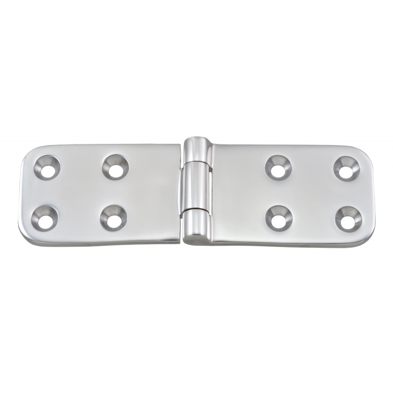 Cerniera lucidata a specchio in acciaio inox AISI 316. Spessore mm. 4,8. Grazie alla sua particolarerobustezza è indicata per sportelli e gavoni di grandi dimensioni.