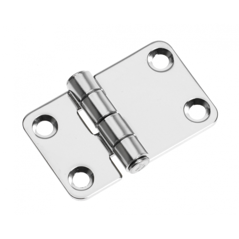 Cerniera lucidata a specchio in acciaio inox AISI 304. Spessore mm. 2, perno Ø mm. 9 intestato