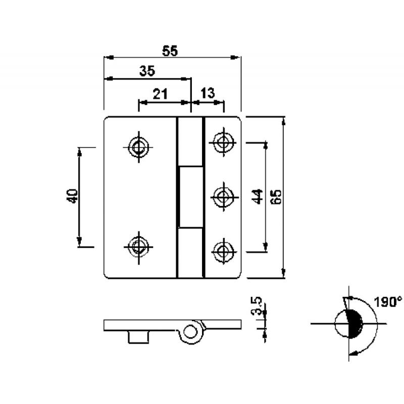 Cerniere a filo in acciaio inox lucidate a specchio. Dim. mm. 55 X 65