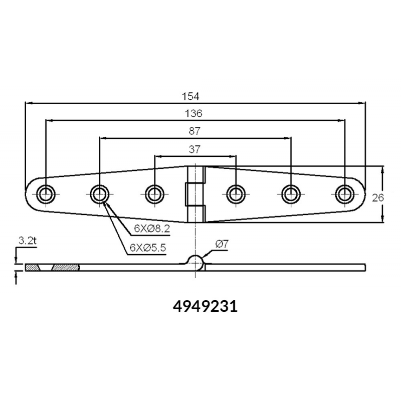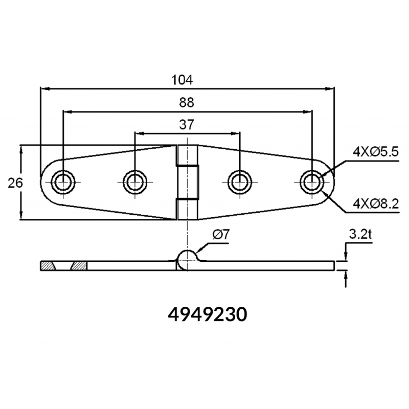 Cerniere in acciaio inox AISI 316 lucidate a specchio, spessore mm. 3,2