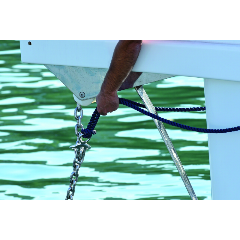 Chain Clower - blocca catena in acciaio inox per ormeggi sicuri. Il carico di rottura è uguale a quello della catena in uso, evita lo scavallamento della catena dal barbotin, annulla la trasmissione di fastidiose vibrazioni a bordo, scarica il verricello dallo sforzo dell'ormeggio. Per catena Ø mm. 6-8.