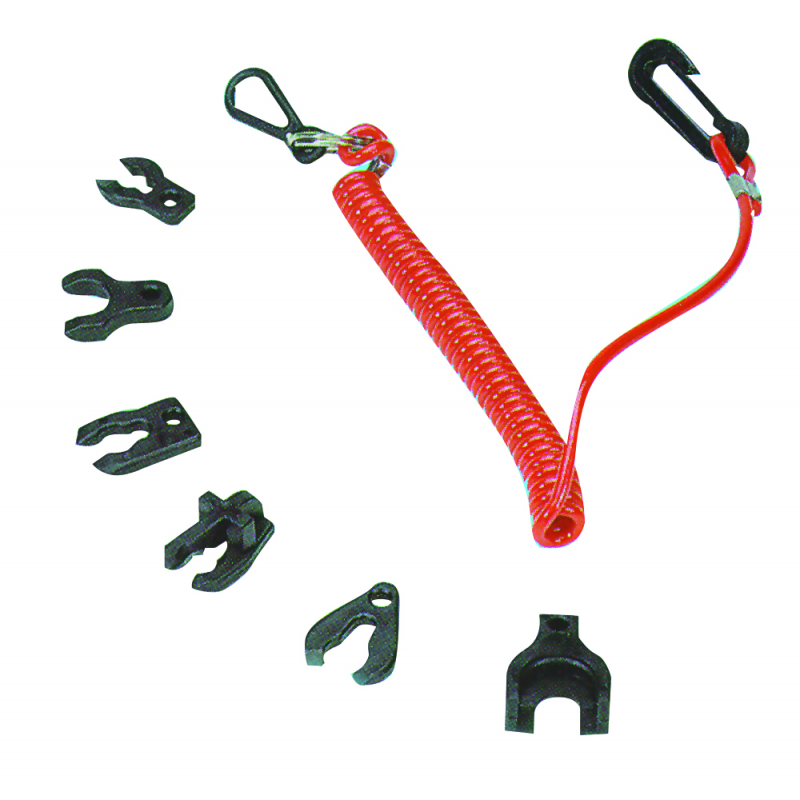 Chiavetta di sicurezza con laccio per motori fuoribordo.