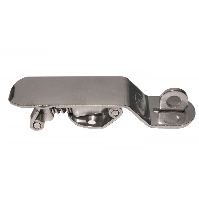 Chiusura regolabilein acciaio inox con foro per lucchetto.Dim. mm. 115x30x17 H, regolazione mm. 14,spessore mm. 2.