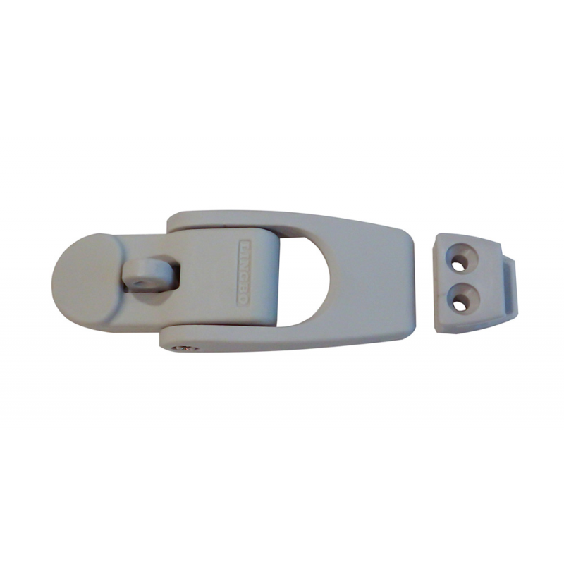 Chiusura a leva in tecnopolimero grigio chiaro con portalucchetto.Dimensioni mm.111 x 40 x 17.5 h