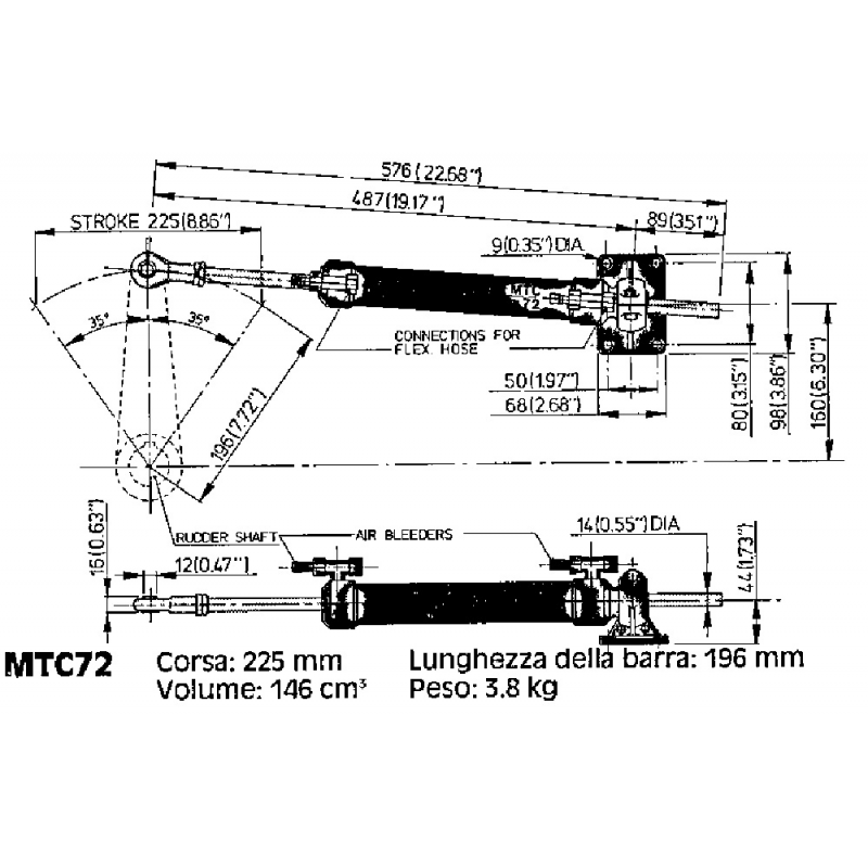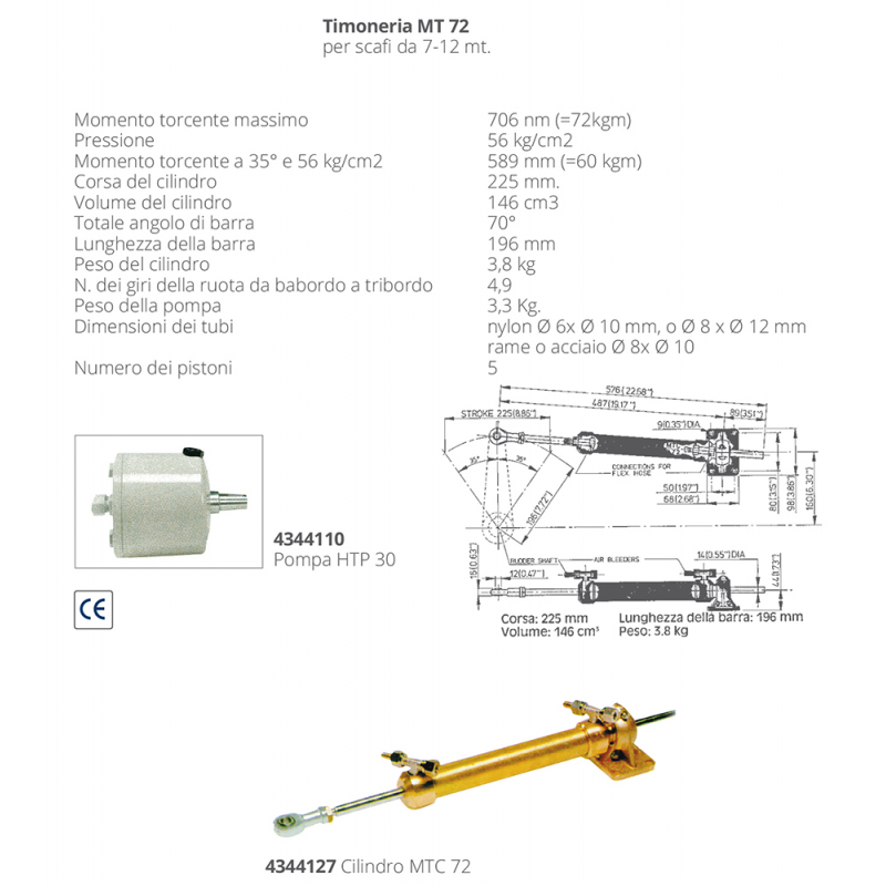 Timoneria MT 72 per scafi da 7-12 mt.