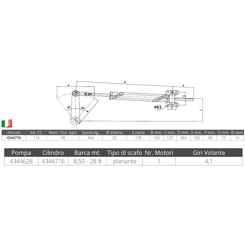 Cilindro in alluminio, bilanciato (uguale numero di giri da mezza corsa a fine corsa). Raccordi da 3/8.