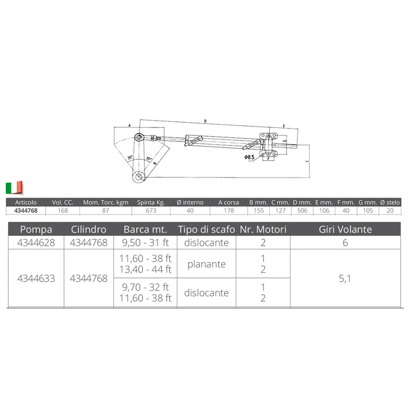 Cilindro in alluminio, bilanciato (uguale numero di giri da mezza corsa a fine corsa). Raccordi da 3/8.