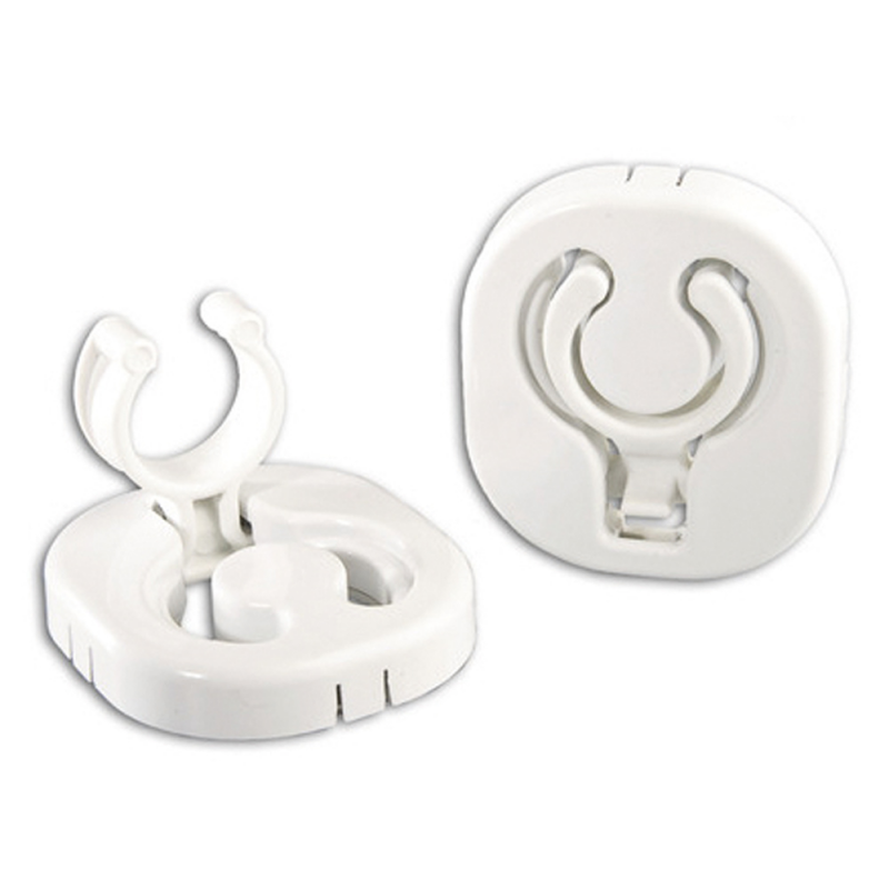 Clip in plastica bianca a scomparsa. Ferma remi, mezzimarinai e manici in genere. Venduto a coppia. 3 fori di fissaggio.