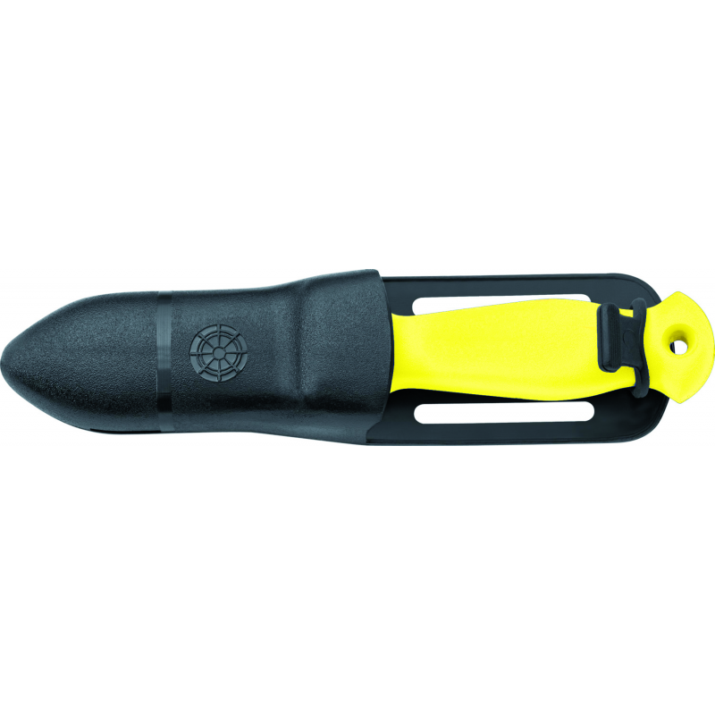 Coltello sub con lama in acciaio inox lunga cm. 9 e sega,fodero e impugnatura colorata (colori assortiti), lunghezza totale mm.190