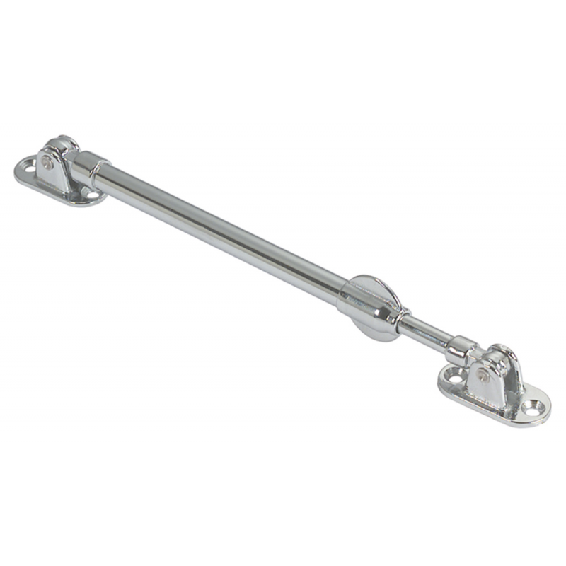 Compasso telescopico a chiusura rapidain ottone cromato per finestrini e portelli.Lungh. da mm. 230 (chiuso) a mm. 380 (aperto)