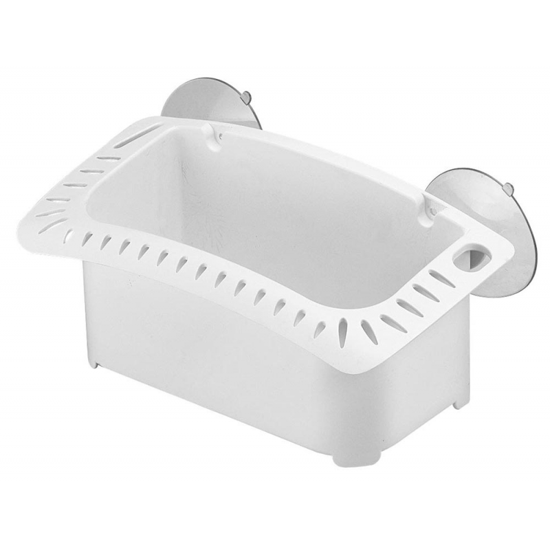 Contenitore portabicchieri, portalattine, portaoggetti in plastica bianca. Fissaggio tramite ventose