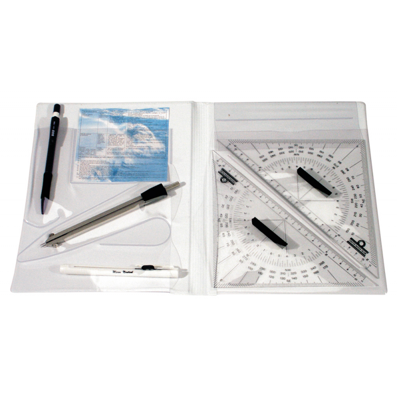 Corredo per patente nautica composto da: 2 squadrette, compasso, matita e gomma.
