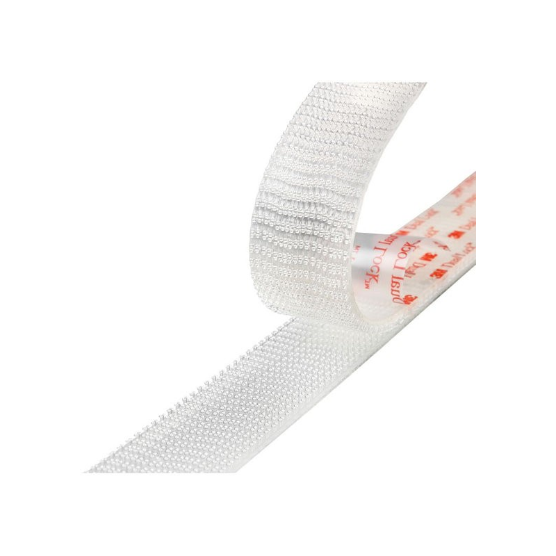 DUAL LOCK sistema di fissaggio richiudibile su se stesso composto da due parti adesive con peduncoli che accoppiati consentono diversi tipi di fissaggio. Valida alternativa ai tradizionali sistemi di fissaggio, si adatta a tutte le superfici, sia rigate che flessibili. Sopporta carichi e pesi elevati. Altezza mm. 25. Rotolo da 45,7 mt. Venduto al metro