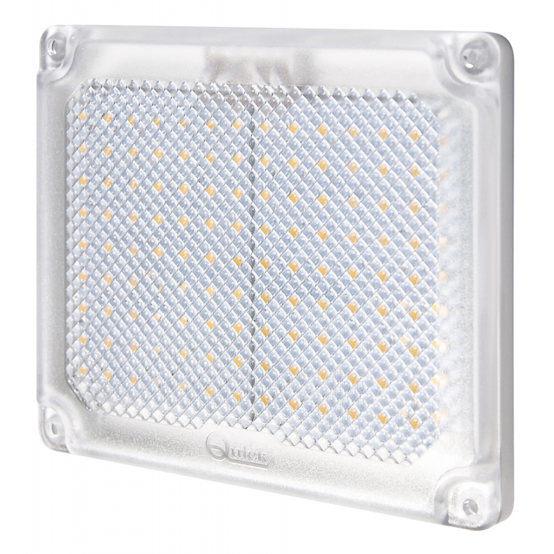 Faretto stagno IP 66 a 126 led ALTA LUMINOSITA’ ( 630 LUMEN ), luce bianca naturale, di forma rettangolare, in plastica bianca RAL 9010 , adattaper corridoi, sala macchine. Installazione a soffitto o parete. Sensibile alla polarità. Fissaggio con viti (non incluse).
