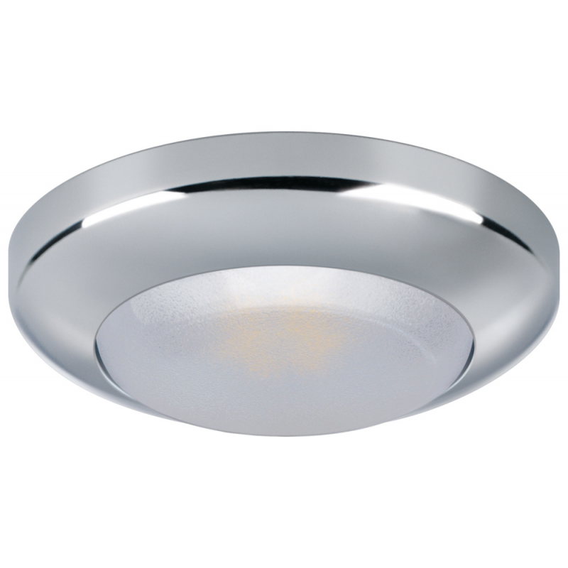 Faretto stagno IP 40 a 6 led ( 133 Lumen ), luce bianca calda con cornice quadrata in plastica cromata. Installazione a soffitto o parete.Sensibile alla polarità. Fissaggio con viti (non incluse).