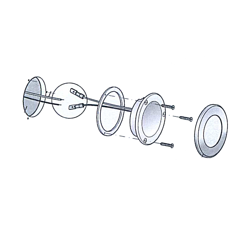 Faretto stagno IP65 ad alta luminosità ( 280 Lumen ), luce bianca calda, con cornice circolare in acciaio inox AISI 316 lucido. Sensibile alla polarità.Fissaggio con viti (non incluse).
