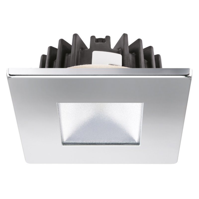 Faretto stagno IP 66, POWER LED ( 335 Lumen ) ad altissima luminosità, luce bianca naturale con cornice quadrata in acciaio inox AISI 316 lucido.Sensibile alla polarità. Fissaggio con viti (non incluse)