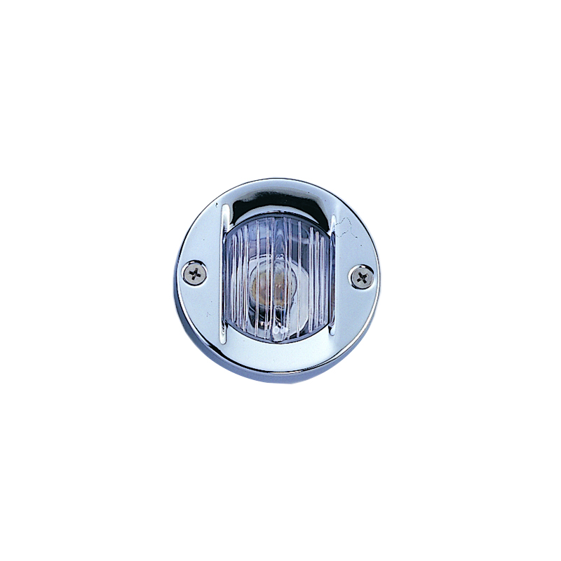 Faretto da incasso in acciaio inox. Utilizzabile come fanale di poppa, illuminazione vano motore, pozzetto. Dimensioni Ø mm. 75, foro Ø mm. 55, profondità mm. 40. 2 fori di fissaggio. Versione lampadina 10W. 12 V