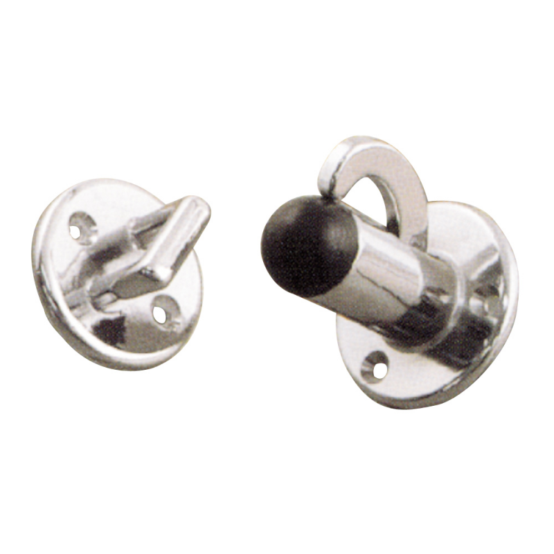 Fermaporta in ottone cromato e gomma terminale antivibrante. Base Ø mm. 40, lung. mm. 58